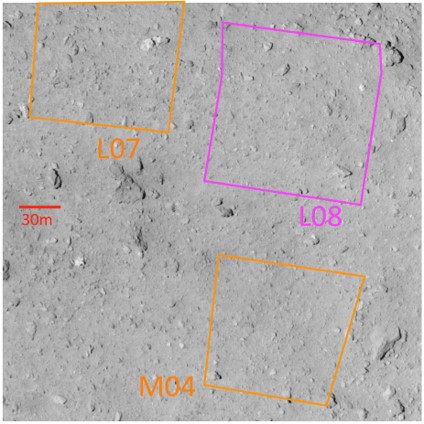 タッチダウン1リハーサル1運用取得画像 ミッション:はやぶさ2 タイプ:観測 掲載日:2018/09/12 天体名:小惑星リュウグウ 観測装置:はやぶさ2搭載 光学航法カメラ 望遠(ONC-T) クレジット:JAXA, 東京大, 高知大, 立教大, 名古屋大, 千葉工大, 明治大, 会津大, 産総研 ダウンロード: 424×424px [51 KB] シェア ツイート 望遠の光学航法カメラ(ONC-T)で約3㎞上空から撮影したタッチダウン候補地点付近の画像。 タッチダウン候補地点のおおよその領域を記載。 撮影日:2018年9月12日 6:00頃(日本時間) 望遠の光学航法カメラ(ONC-T)で約3㎞上空から撮影したタッチダウン候補地点付近の画像。 撮影日:2018年9月12日 6:00頃(日本時間) 関連リリース 記者説明会資料 2018年9月27日(小惑星探査機「はやぶさ2」の 運用状況)