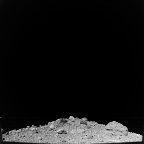探査機構体に斜め下向きに取り付けられたW2で撮影したリュウグウの地平線。