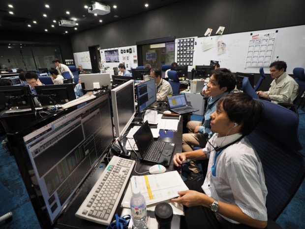 「はやぶさ2」MASCOT分離運用(8)(2018/10/3) ミッション:はやぶさ2 タイプ:写真 掲載日:2018/10/03 天体名:小惑星リュウグウ クレジット:ISAS/JAXA ダウンロード: 5184×3888px [9 MB] シェア ツイート 日中の運用担当スタッフが集合。このスタッフがMASCOT分離時の運用も担う。 撮影日:2018年10月3日 7:30頃 撮影場所:JAXA宇宙科学研究所 管制室内