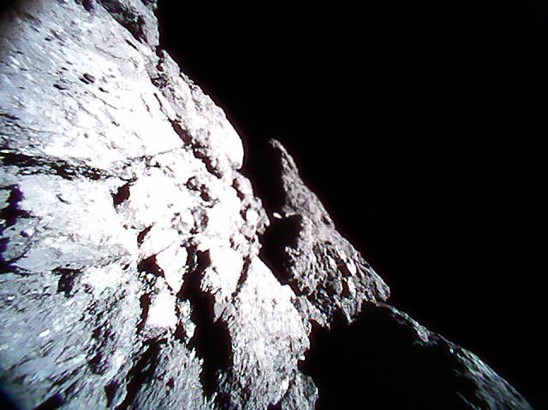 「はやぶさ2」MINERVA-II1(Rover-1A)撮影写真(2018/10/20) ミッション:はやぶさ2 タイプ:観測 掲載日:2018/12/13 天体名:小惑星リュウグウ 観測装置:MINERVA-II1(Rover-1A) クレジット:JAXA ダウンロード: 548×410px [58 KB] シェア ツイート Rover-1Aが小惑星表面静止中に後方広角カメラで撮影した写真。 撮影日:2018年10月20日(日本時間) 関連リリース 小惑星探査機「はやぶさ2」の記者説明会(18/12/13)