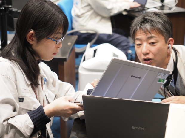 「はやぶさ2」タッチダウン運用1 降下を開始したことを確認(2019/2/21) ミッション:はやぶさ2 タイプ:写真 掲載日:2019/02/21 天体名:小惑星リュウグウ クレジット:ISAS/JAXA ダウンロード: 5184×3888px [8 MB] シェア ツイート 撮影時刻:日本時間2019年2月21日 13:45頃 撮影場所:JAXA宇宙科学研究所 管制室内 内容:「はやぶさ2」がタッチダウン目標地点であるL08-E1に向け、 降下を開始したことを示すデータを受信したころの管制室の様子。