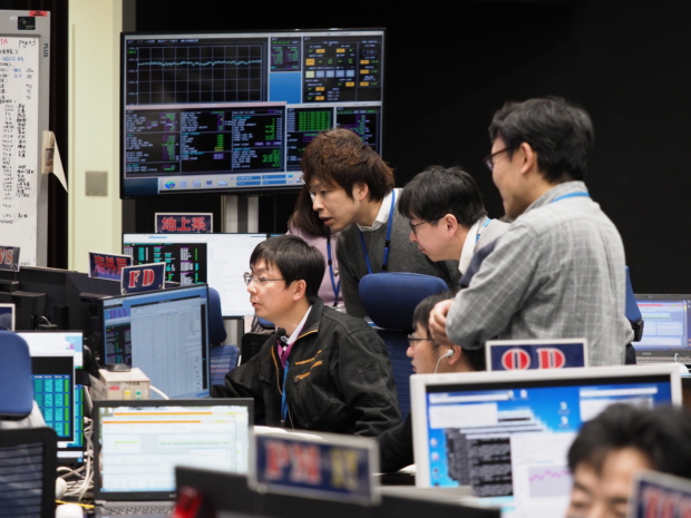 「はやぶさ2」タッチダウン運用1 降下開始前確認(GATE1チェック)完了 (2019/2/21) ミッション:はやぶさ2 タイプ:写真 掲載日:2019/02/21 天体名:小惑星リュウグウ クレジット:ISAS/JAXA ダウンロード: 5184×3888px [8 MB] シェア ツイート 撮影時刻:日本時間2019年2月21日 12:40頃 撮影場所:JAXA宇宙科学研究所 管制室内 内容:降下開始の準備が整っているかを運用担当者で確認している様子。 Go判断となり、予定通り「はやぶさ2」は降下を開始することを決定。