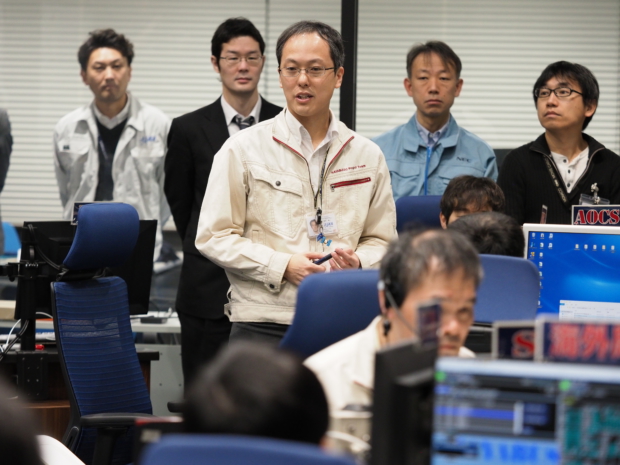 「はやぶさ2」タッチダウン運用1 降下運用開始前のシフト交代ブリーフィングの様子 (2019/2/21) ミッション:はやぶさ2 タイプ:写真 掲載日:2019/02/21 天体名:小惑星リュウグウ クレジット:ISAS/JAXA ダウンロード: 5184×3888px [8 MB] シェア ツイート 撮影時刻:日本時間2019年2月21日 6:30頃 撮影場所:JAXA宇宙科学研究所 管制室内 内容:タッチダウン目標地点に向けて、探査機を降下させ始める運用担当者が集合し、 シフト交代のフリーフィングを行っている様子。