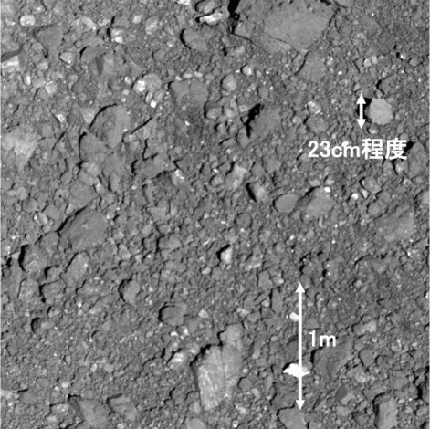 「はやぶさ2」S01領域内 (DO-S01) ミッション:はやぶさ2 タイプ:観測 掲載日:2019/03/18 天体名:小惑星リュウグウ 観測装置:「はやぶさ2」搭載 光学航法カメラ(ONC-T) クレジット:JAXA, 東京大, 高知大, 立教大, 名古屋大, 千葉工大, 明治大, 会津大, 産総研 ダウンロード: 471×470px [75 KB] シェア ツイート ・降下観測運用DO-S01で撮影したS01領域 (TD候補地) ・カメラ:ONC-T ・撮影時刻(日本時間):2019年3月8日 12:24 ・撮影高度:35m 関連リリース 小惑星探査機「はやぶさ2」記者説明会資料(2019/3/18)