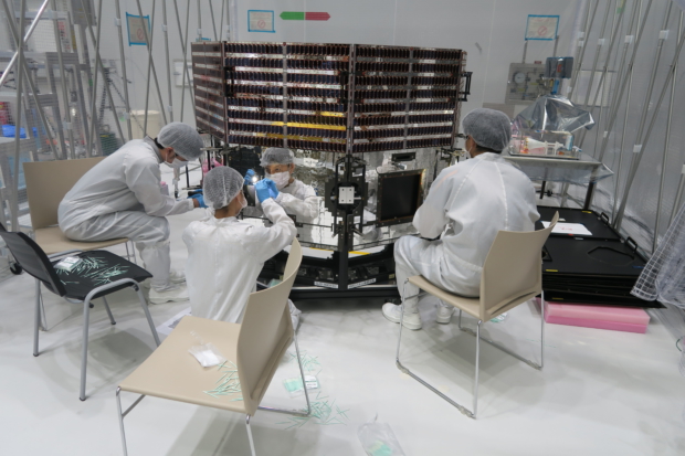 水星磁気圏探査機「みお」(MMO)の最終清掃作業の様子