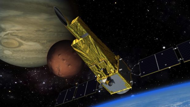 惑星分光観測衛星「SPRINT-A」CG (3) ミッション:ひさき タイプ:イラスト 掲載日:2013/06/08 クレジット:JAXA ダウンロード: 1914×1073px [372 KB] シェア ツイート 惑星分光観測衛星(SPRINT-A)は地球を回る人工衛星軌道から金星や火星、木星などを遠隔観測する世界で最初の惑星観測用の宇宙望遠鏡です。 関連リリース 惑星分光観測衛星「ひさき」