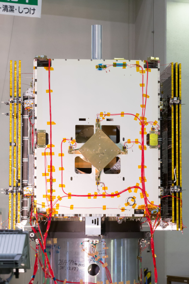 「はやぶさ2」一次噛み合わせ試験用機体公開の様子(3) ミッション:はやぶさ2 タイプ:写真 掲載日:2012/12/26 クレジット:JAXA ダウンロード: 1400×2100px [432 KB] シェア ツイート 2012年12月26日、相模原キャンパスで「はやぶさ2」の機体を公開しました。今春に設計を完了した「はやぶさ2」は、まもなく探査機構造体への機器据え付けや、機器間のインターフェースの確認を目的とした「一次噛み合わせ試験」を開始します。 また、フライト品が完成した探査機の構造体や太陽電池パネルは、振動試験による機体の確認と、搭載機器が晒される振動環境の計測を行います。