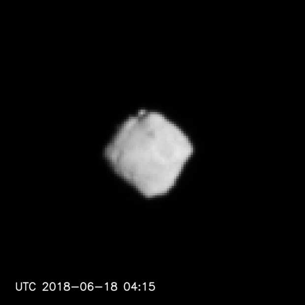 「はやぶさ2」ONC-Tによって撮影されたリュウグウ(15)(2018/6/18) ミッション:はやぶさ2 タイプ:観測 掲載日:2018/06/20 天体名:小惑星リュウグウ 観測装置:「はやぶさ2」搭載 光学航法カメラ(ONC-T) クレジット:[ONCチーム] JAXA, 東京大, 高知大, 立教大, 名古屋大, 千葉工大, 明治大, 会津大, 産総研 ダウンロード: 1024×1024px [10 KB] シェア ツイート ONC-Tによって撮影されたリュウグウ。2018年6月18日、13:15(日本時間)頃の撮影。小惑星までの距離は約215km。 (画像処理をしたもの) 関連リリース 小惑星探査機「はやぶさ2」の取得画像に関する質疑応答機会(18/06/21)