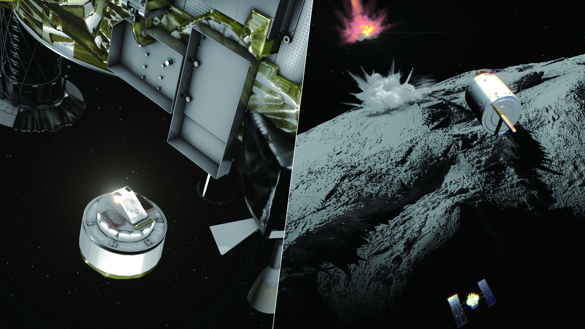 「はやぶさ2」衝突装置運用 ミッション:はやぶさ2 タイプ:イラスト 掲載日:2018/06/01 クレジット:JAXA ダウンロード: 1920×1080px [2 MB] シェア ツイート 「はやぶさ2」搭載の衝突装置(SCI)の切り離しのイメージ図。衝突装置運用の様子は分離カメラ「DCAM3」により観測し、探査機本体は小惑星から一時離脱する。
