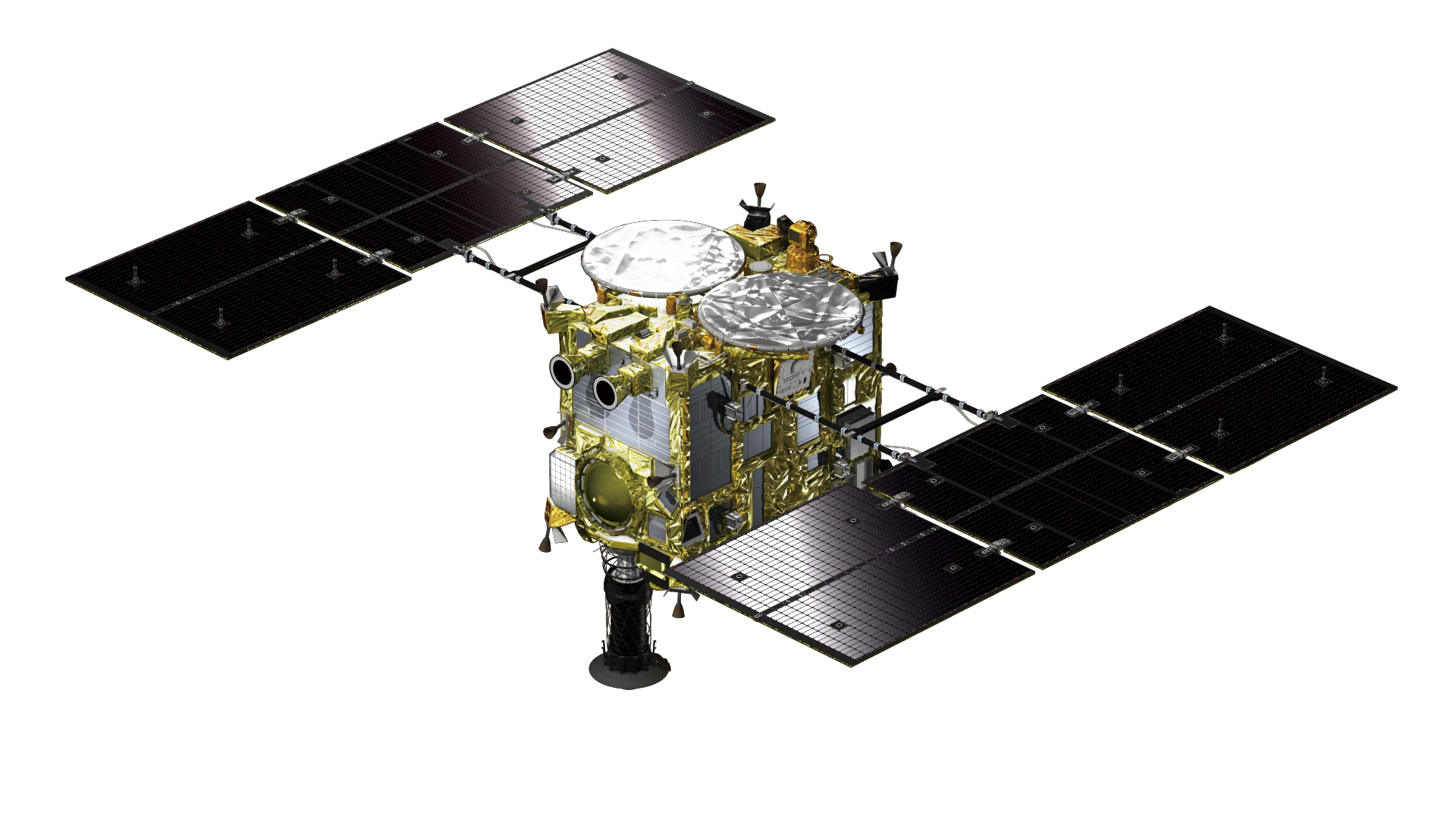 「はやぶさ2」外観(正面) ミッション:はやぶさ2 タイプ:イラスト 掲載日:2018/05/31 天体名:小惑星リュウグウ クレジット:JAXA ダウンロード: 1920×1080px [618 KB] シェア ツイート 「はやぶさ2」のCG(正面)。