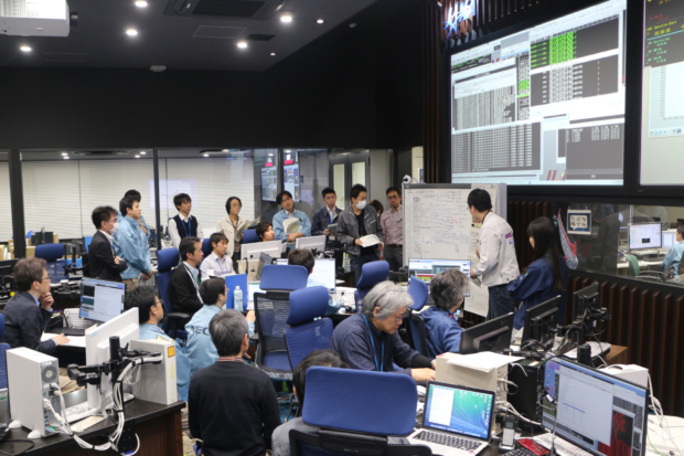 「はやぶさ2」実時間運用訓練の様子(4) ミッション:はやぶさ2 タイプ:写真 掲載日:2018/03/29 天体名:小惑星リュウグウ クレジット:JAXA ダウンロード: 2236×1491px [2 MB] シェア ツイート RIO訓練(Real time Integrated Operation)の様子。 探査機ハードウェアシミュレータを用いた実時間運用訓練で、往復伝搬遅延時間、画像航法テレメトリ、小惑星相対運動等を模擬し、手順・運用ツール・人の習熟を行う。