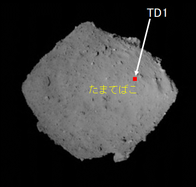 「はやぶさ2」1回目(TD1)と2回目(TD2)のタッチダウンの場所 (1) ミッション:はやぶさ2 タイプ:観測 掲載日:2019/07/09 天体名:小惑星リュウグウ クレジット:JAXA, 東京大, 高知大, 立教大, 名古屋大, 千葉工大, 明治大, 会津大, 産総研, 神戸大, 産業医大 ダウンロード: 381×365px [69 KB] シェア ツイート (TD1文字あり) (TD1文字なし) (TD2文字あり) (TD2文字なし) 関連リリース 小惑星探査機「はやぶさ2」の記者説明会(19/7/9)ライブ配信