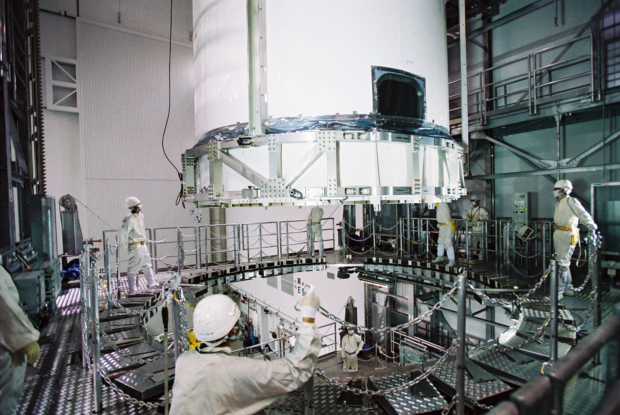 • 種子島宇宙センター衛星フェアリング組立棟における「はやぶさ2」フェアリング結合作業