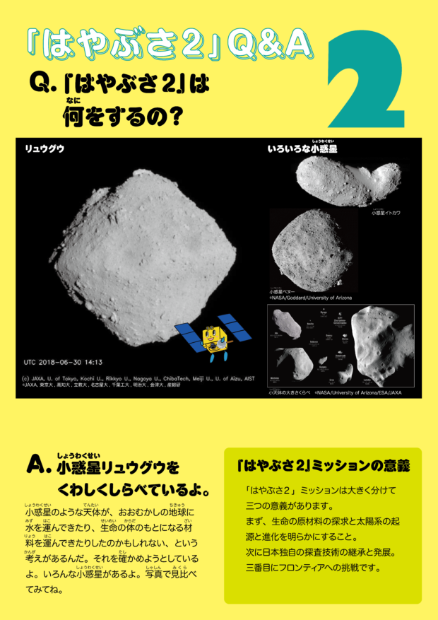 「はやぶさ2」なぜ?なに?とくしゅう パネル(2) ミッション:はやぶさ2 タイプ:イラスト 掲載日:2019/09/18 クレジット:ISAS/JAXA ダウンロード: 9934×14044px [11 MB] シェア ツイート 宇宙科学探査交流棟 夏の企画展(2019) 「はやぶさ2」なぜ?なに?とくしゅう パネル