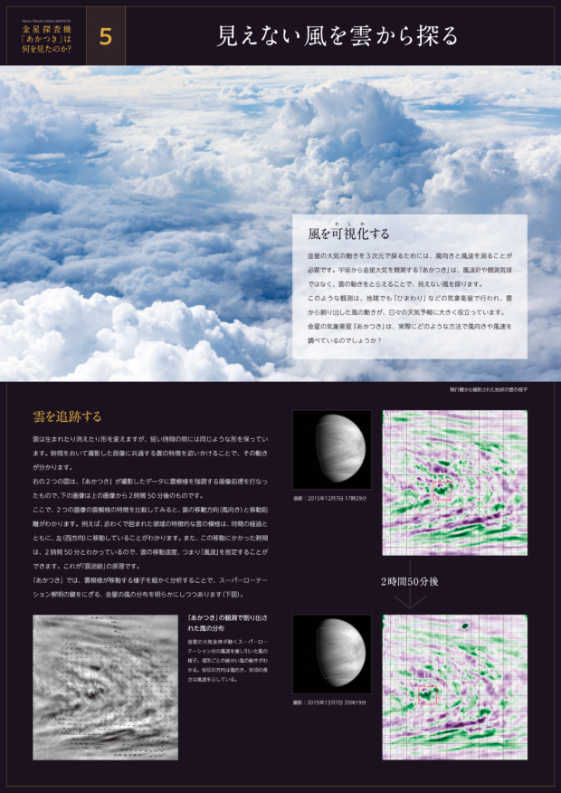 「あかつき」展示パネル(5) 見えない風を雲から探る ミッション:あかつき タイプ:写真 掲載日:2020/02/19 クレジット:Planet-C Project Team / JAXA ダウンロード: 5795×8192px [12 MB] シェア ツイート 2022/03/15 更新
