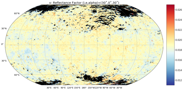 「はやぶさ2」ONCによるリュウグウの測光観測 ミッション:はやぶさ2 タイプ:イラスト 掲載日:2020/06/11 天体名:小惑星リュウグウ クレジット:Tatsumi et al. (2020) ダウンロード: 1608×788px [1 MB] シェア ツイート ONCの観測によりリュウグウの全球標準反射率(アルベド)マップが作成された。 関連リリース ONCでわかった、炭素の多い黒いリュウグウ(はやぶさ2」プロジェクト) 小惑星探査機「はやぶさ2」の記者説明会(20/6/11)(録画) 記者説明会資料(はやぶさ2」プロジェクト)