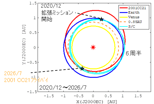 「はやぶさ2」拡張ミッション EAEEAシナリオ 軌道シーケンス1(2020/12~2026/7) ミッション:はやぶさ2 タイプ:イラスト 掲載日:2020/09/15 クレジット:JAXA ダウンロード: 517×350px [41 KB] シェア ツイート (文字なし) (小惑星探査機「はやぶさ2」記者説明会(20/9/15)) 関連リリース 小惑星探査機「はやぶさ2」記者説明会 資料