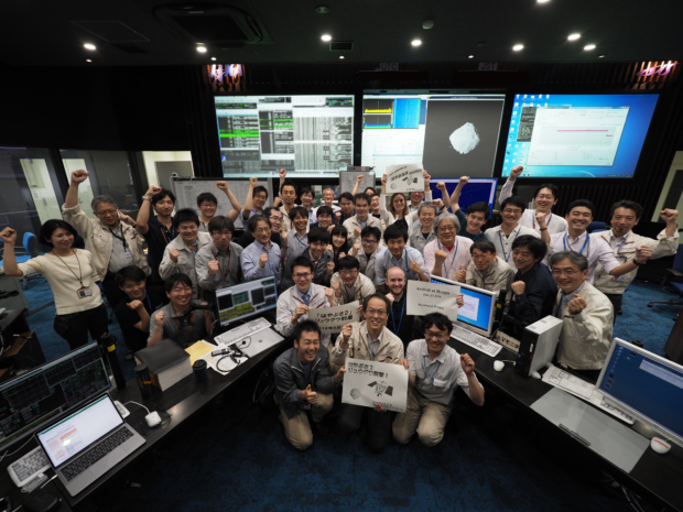 「はやぶさ2」、リュウグウ到着の日の管制室:到着確認後の記念写真 ミッション:はやぶさ2 タイプ:写真 掲載日:2018/06/27 クレジット:ISAS/JAXA ダウンロード: 5184×3888px [10 MB] シェア ツイート 2018年6月27日、10:06頃撮影 関連リリース 小惑星探査機「はやぶさ2」の小惑星Ryugu到着について