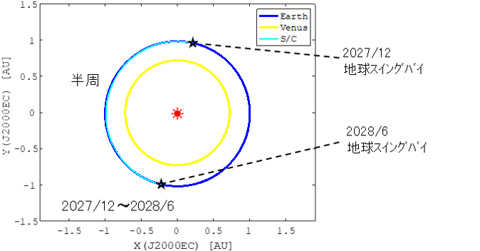 「はやぶさ2」拡張ミッション EAEEAシナリオ 軌道シーケンス3(2027/12~2028/6) ミッション:はやぶさ2 タイプ:イラスト 掲載日:2020/09/15 クレジット:JAXA ダウンロード: 674×352px [33 KB] シェア ツイート (文字なし) (小惑星探査機「はやぶさ2」記者説明会(20/9/15)) 関連リリース 小惑星探査機「はやぶさ2」記者説明会 資料