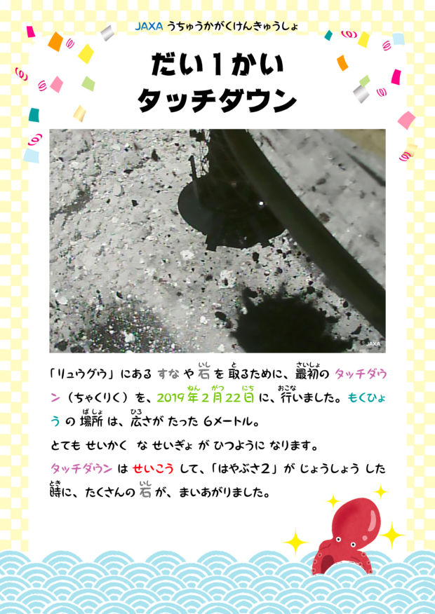 はやぶさ2 こどもむけ2021 だい1かいタッチダウン タイプ:写真 掲載日:2022/03/15 クレジット:ISAS/JAXA ダウンロード: 5795×8192px [9 MB] シェア ツイート