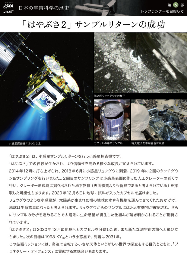 日本の宇宙科学の歴史 「はやぶさ2」サンプルリターンの成功 タイプ:写真 掲載日:2022/03/22 クレジット:ISAS/JAXA ダウンロード: 5791×8192px [12 MB] シェア ツイート