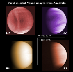 「あかつき」の4つのカメラによる金星の疑似カラー画像