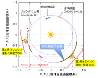 「はやぶさ2」軌道計画 復路軌道制御のイメージ図