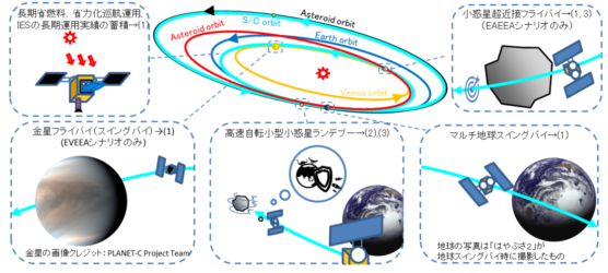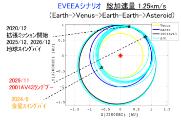 「はやぶさ2」拡張ミッション案概要 EVEEAシナリオ(総加速量 1.25km/s)