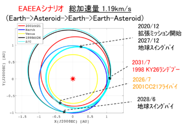 「はやぶさ2」拡張ミッション案概要 EVEEAシナリオ(総加速量 1.19km/s)