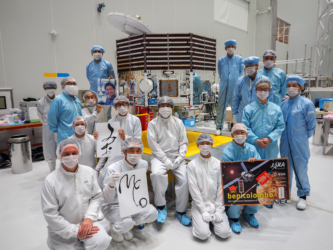 水星磁気圏探査機「みお」(MMO)とBepiColombo日本チームの集合写真