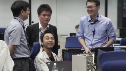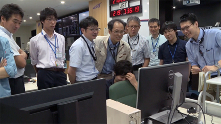「はやぶさ2」MINERVA-II1 分離確認後のメンバーの様子(4)(寄り)(2018/9/21)