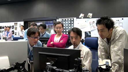 「はやぶさ2」MINERVA-II1 分離確認後のメンバーの様子(1)(引き)(2018/9/21)