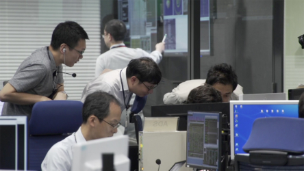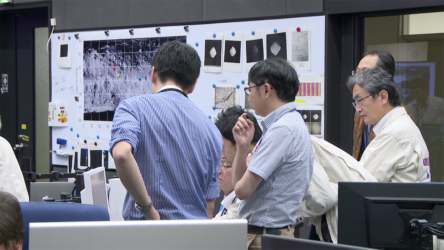「はやぶさ2」重力計測時の管制室の様子(2018/8/6-7)