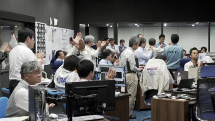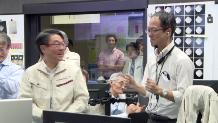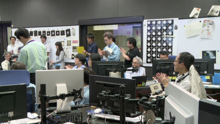 「はやぶさ2」MINERVA-II1 分離確認後のメンバーの様子(3)(引き)(2018/9/21)