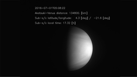 「あかつき」金星周回軌道投入直後に撮影した金星:紫外イメージャ(UVI)